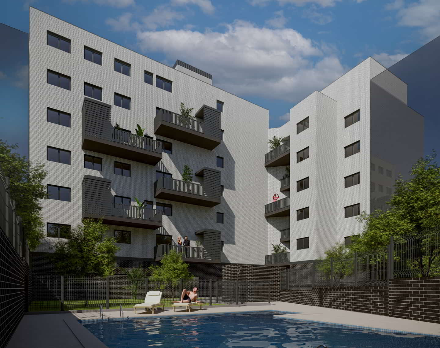 Elige entre viviendas de 1, 2 y 3 dormitorios: viviendas en planta tipo o bajos con amplia zona exterior privada. Todas cuentan con trastero y una o dos plazas de garaje según la tipología.